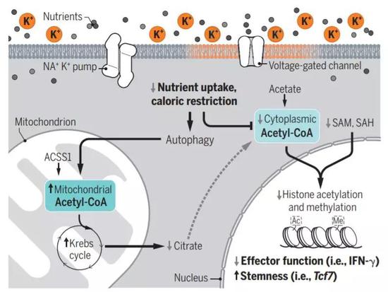 此外,研究人員們還發(fā)現(xiàn)了一個非常有趣的現(xiàn)象。在鉀離子的影響下 ,T細(xì)胞的表觀遺傳學(xué)修飾會發(fā)生變化 ,影響T細(xì)胞的分化 。于是 ,這些T細(xì)胞一直被束縛在“干細(xì)胞狀態(tài)”之下,只會不斷自我復(fù)制,卻無法順利分化成具有殺傷性的效應(yīng)T細(xì)胞 。這就能夠解釋 ,為啥聚集在腫瘤周圍的大量T細(xì)胞會對病灶無動于衷。
