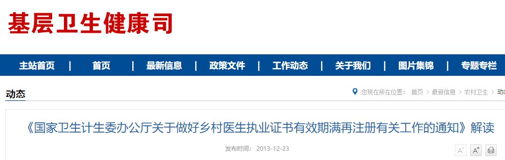剛剛 ,國家衛(wèi)生健康委發(fā)布《關(guān)于做好鄉(xiāng)村醫(yī)生執(zhí)業(yè)證書有效期滿再注冊工作的通知》 ,村醫(yī)必看 !