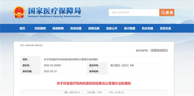 政策時(shí)訊|關(guān)于印發(fā)醫(yī)療機(jī)構(gòu)檢查檢驗(yàn)結(jié)果互認(rèn)管理辦法的通知